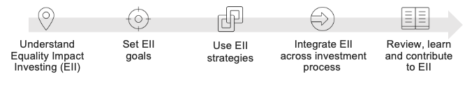 The toolkit is structured into five sections, starting with an overview of equality impact investing (EII) and then looking at its key steps: